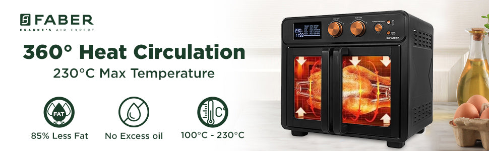 With 360 Degree heat circulation technology technology chamber gets heat upto 230 Degree celsius with is sufficient to cook your meal quickly with 85% less oil usage.