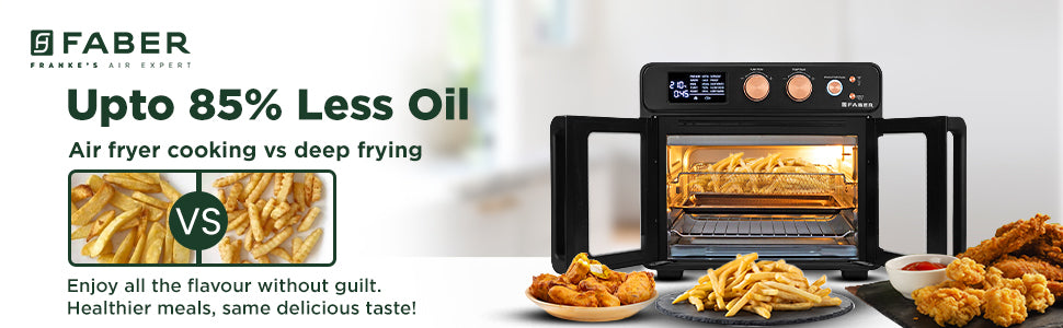 Get one way solutions to your snacks craving with this air oven presented by Faber. You can prepare from crispy fries to baked delights, with just ease.